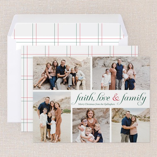 Send a Christmas card friends and family will love. Add your own greeting and everyone's names. There's room for more photos and wishes on the back, too.