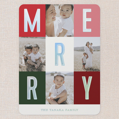 Send a Christmas card friends and family will love. Add your own greeting and everyone's names. There's room for more photos and wishes on the back, too.