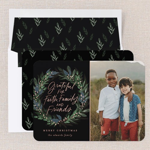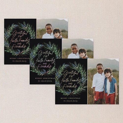 Send a Christmas card friends and family will love. Add your own greeting and everyone's names. There's room for more photos and wishes on the back, too.