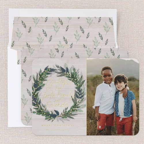 Send a Christmas card friends and family will love. Add your own greeting and everyone's names. There's room for more photos and wishes on the back, too.