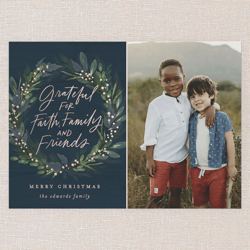 Send a Christmas card friends and family will love. Add your own greeting and everyone's names. There's room for more photos and wishes on the back, too.