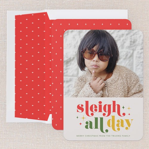Send a Christmas card friends and family will love. Add your own greeting and everyone's names. There's room for more photos and wishes on the back, too.