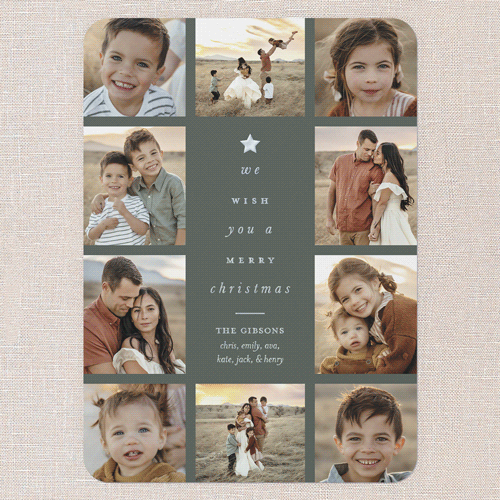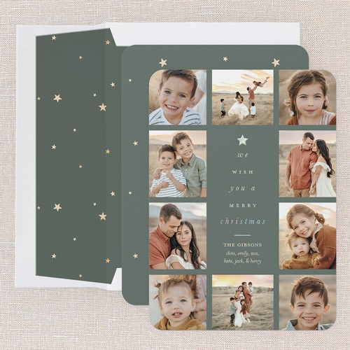 Send a Christmas card friends and family will love. Add your own greeting and everyone's names. There's room for more photos and wishes on the back, too.