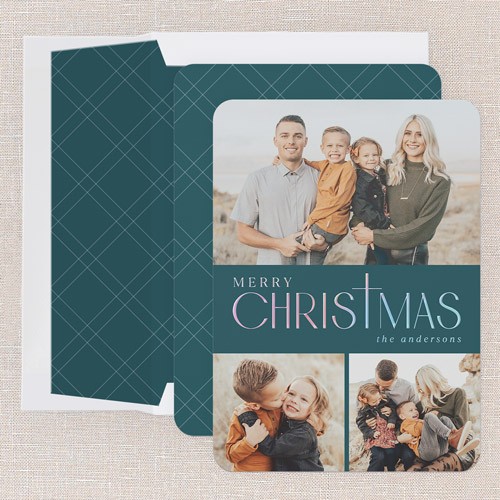 Send a Christmas card friends and family will love. Add your own greeting and everyone's names. There's room for more photos and wishes on the back, too.