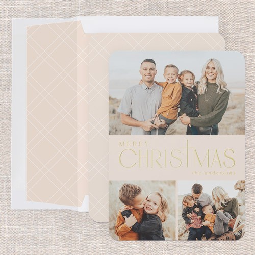 Send a Christmas card friends and family will love. Add your own greeting and everyone's names. There's room for more photos and wishes on the back, too.