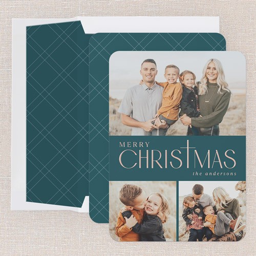 Send a Christmas card friends and family will love. Add your own greeting and everyone's names. There's room for more photos and wishes on the back, too.