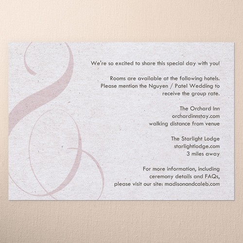 Make your wedding invitations even more personal with enclosure cards, designed to match your wedding invitations, and customized with the details of your big day.
