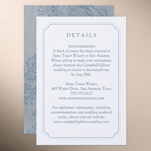 Make your wedding invitations even more personal with enclosure cards, designed to match your wedding invitations, and customized with the details of your big day.
