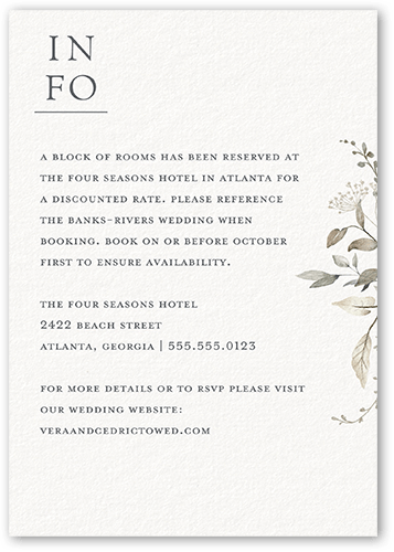 Make your wedding invitations even more personal with enclosure cards, designed to match your wedding invitations, and customized with the details of your big day.