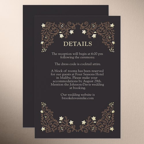 Make your wedding invitations even more personal with enclosure cards, designed to match your wedding invitations, and customized with the details of your big day.