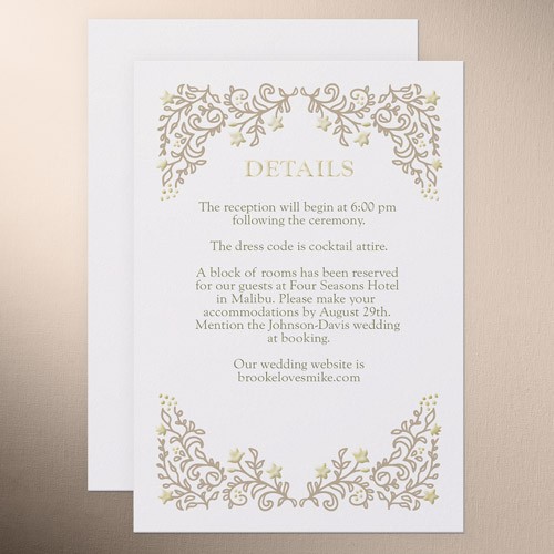 Make your wedding invitations even more personal with enclosure cards, designed to match your wedding invitations, and customized with the details of your big day.