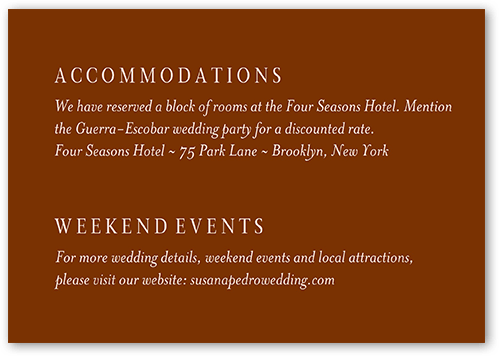 Make your wedding invitations even more personal with enclosure cards, designed to match your wedding invitations, and customized with the details of your big day.