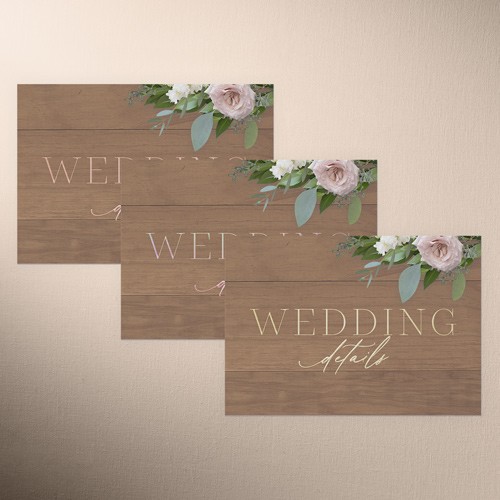 Make your wedding invitations even more personal with enclosure cards, designed to match your wedding invitations, and customized with the details of your big day.