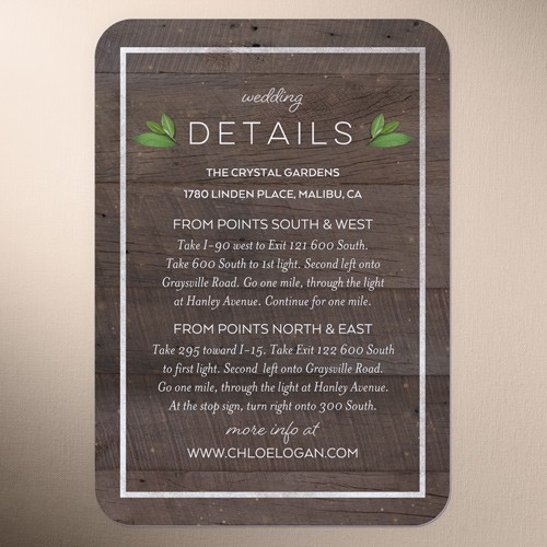 Make your wedding invitations even more personal with enclosure cards, designed to match your wedding invitations, and customized with the details of your big day.