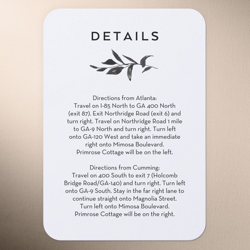 Make your wedding invitations even more personal with enclosure cards, designed to match your wedding invitations, and customized with the details of your big day.