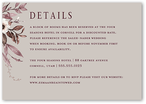 Make your wedding invitations even more personal with enclosure cards, designed to match your wedding invitations, and customized with the details of your big day.