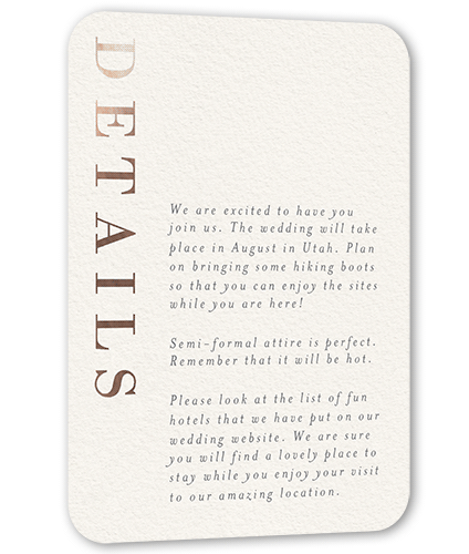 Make your wedding invitations even more personal with enclosure cards, designed to match your wedding invitations, and customized with the details of your big day.