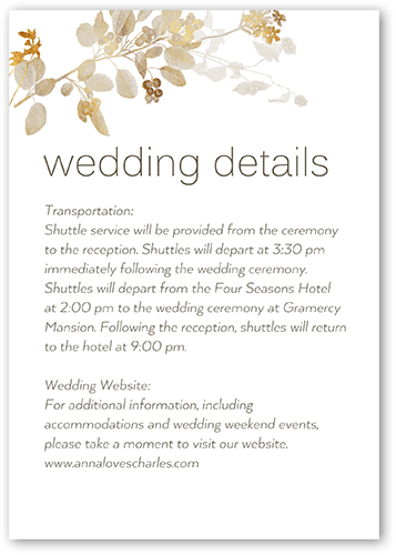 Make your wedding invitations even more personal with enclosure cards, designed to match your wedding invitations, and customized with the details of your big day.