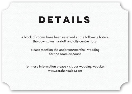 Make your wedding invitations even more personal with enclosure cards, designed to match your wedding invitations, and customized with the details of your big day.