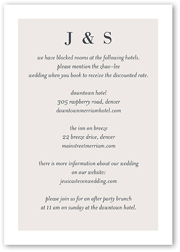 Make your wedding invitations even more personal with enclosure cards, designed to match your wedding invitations, and customized with the details of your big day.
