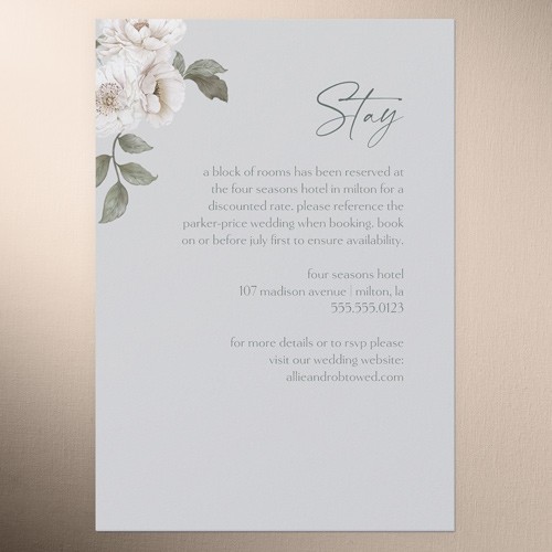 Make your wedding invitations even more personal with enclosure cards, designed to match your wedding invitations, and customized with the details of your big day.