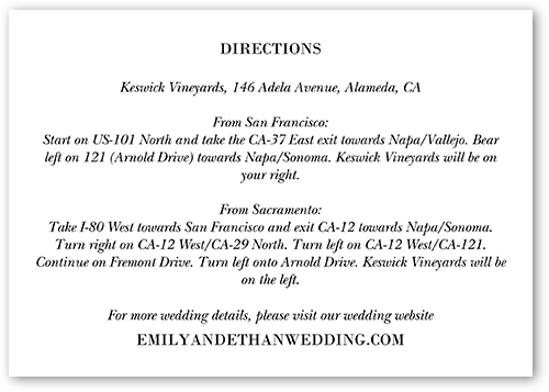 Make your wedding invitations even more personal with enclosure cards, designed to match your wedding invitations, and customized with the details of your big day.