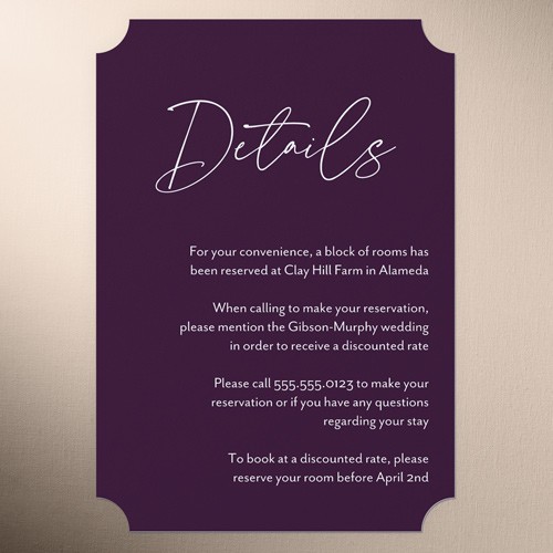 Make your wedding invitations even more personal with enclosure cards, designed to match your wedding invitations, and customized with the details of your big day.