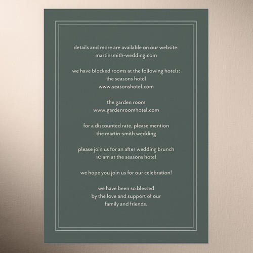 Make your wedding invitations even more personal with enclosure cards, designed to match your wedding invitations, and customized with the details of your big day.