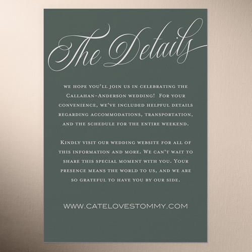 Make your wedding invitations even more personal with enclosure cards, designed to match your wedding invitations, and customized with the details of your big day.