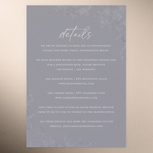 Make your wedding invitations even more personal with enclosure cards, designed to match your wedding invitations, and customized with the details of your big day.