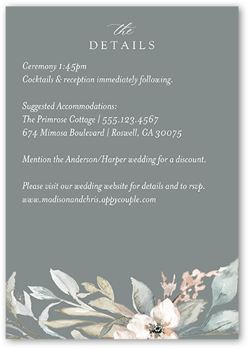 Make your wedding invitations even more personal with enclosure cards, designed to match your wedding invitations, and customized with the details of your big day.