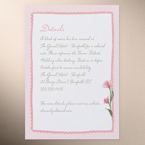 Make your wedding invitations even more personal with enclosure cards, designed to match your wedding invitations, and customized with the details of your big day.