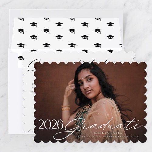 Celebrate the new graduate with this unique graduation announcement. Personalize with the graduate's name and the event details.