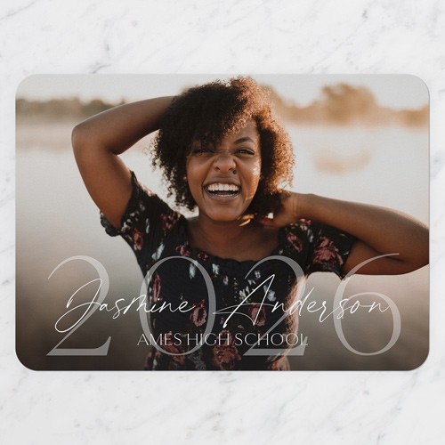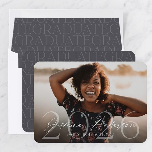 Celebrate the new graduate with this unique graduation announcement. Personalize with the graduate's name and the event details.