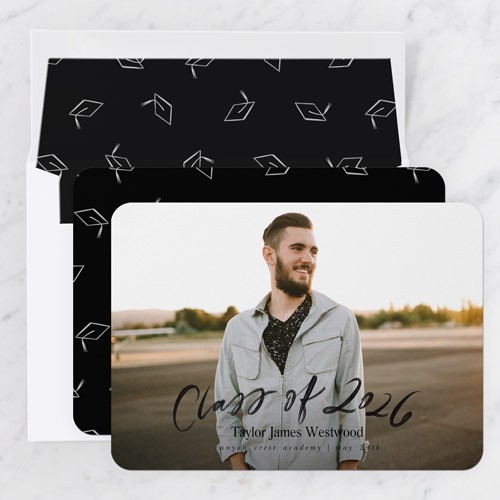 Celebrate the new graduate with this unique graduation announcement. Personalize with the graduate's name and the event details.