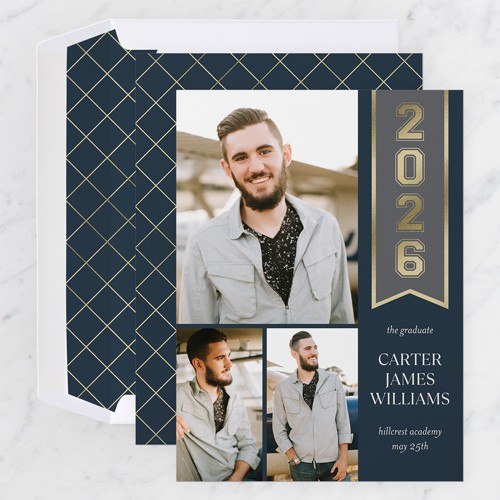 Celebrate the new graduate with this unique graduation announcement. Personalize with the graduate's name and the event details.