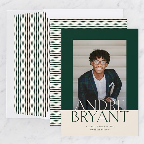 Celebrate the new graduate with this unique graduation announcement. Personalize with the graduate's name and the event details.