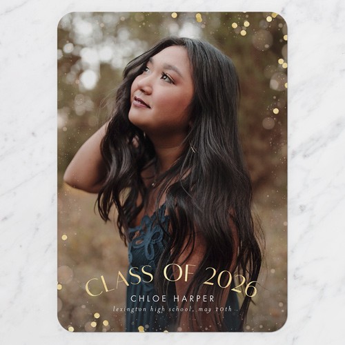 Celebrate the new graduate with this unique graduation announcement. Personalize with the graduate's name and the event details.