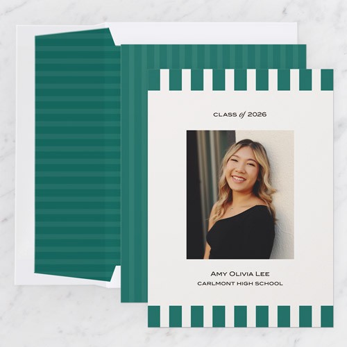 Celebrate the new graduate with this unique graduation announcement. Personalize with the graduate's name and the event details.