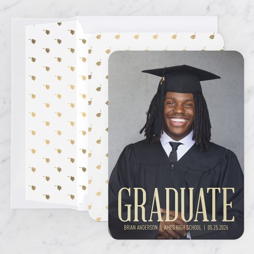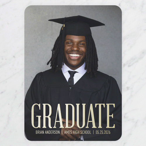 Celebrate the new graduate with this unique graduation announcement. Personalize with the graduate's name and the event details.
