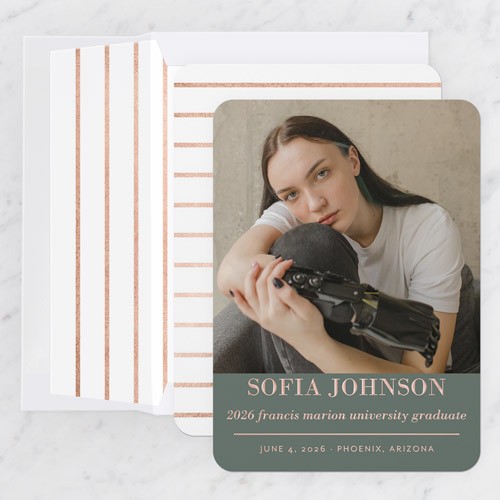Celebrate the new graduate with this unique graduation announcement. Personalize with the graduate's name and the event details.