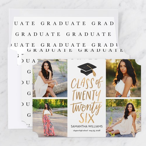 Celebrate the new graduate with this unique graduation announcement. Personalize with the graduate's name and the event details.