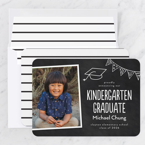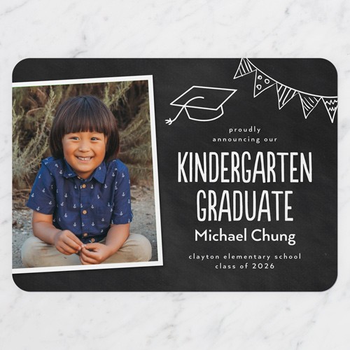 Celebrate the new graduate with this unique graduation announcement. Personalize with the graduate's name and the event details.