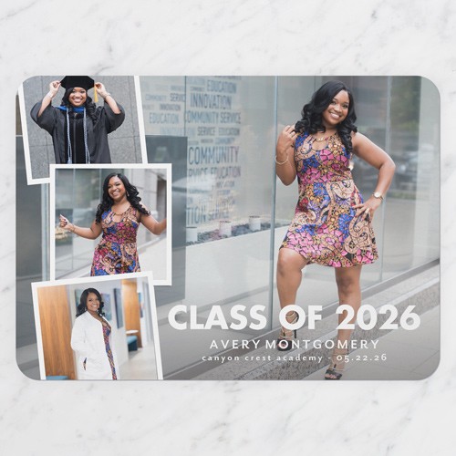 Celebrate the new graduate with this unique graduation announcement. Personalize with the graduate's name and the event details.