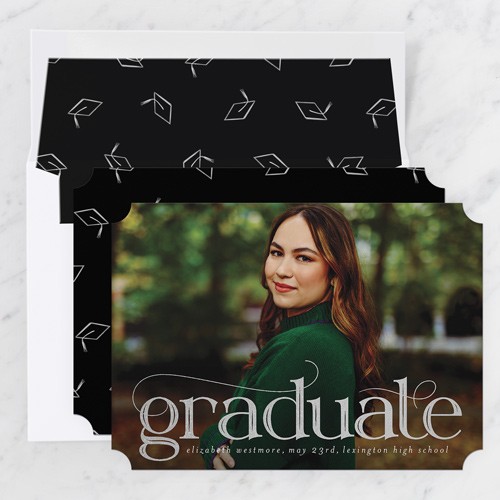 Celebrate the new graduate with this unique graduation announcement. Personalize with the graduate's name and the event details.