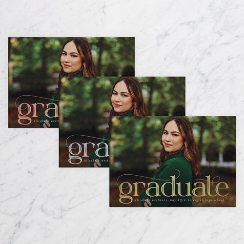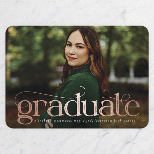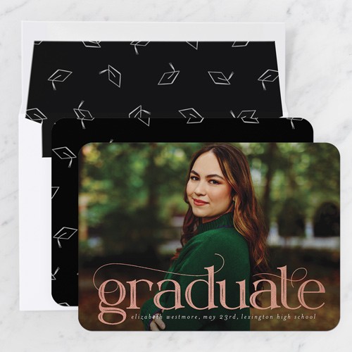 Celebrate the new graduate with this unique graduation announcement. Personalize with the graduate's name and the event details.