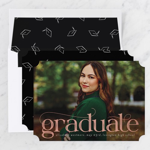 Celebrate the new graduate with this unique graduation announcement. Personalize with the graduate's name and the event details.