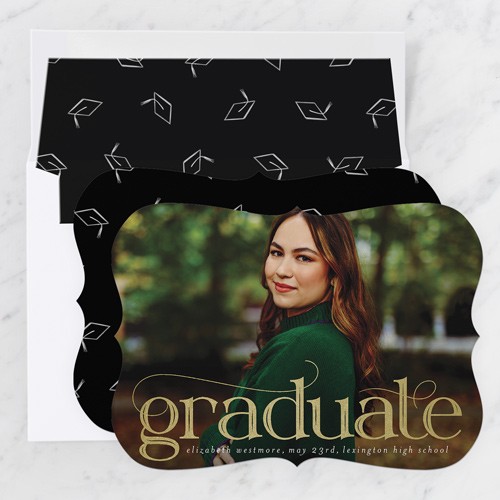 Celebrate the new graduate with this unique graduation announcement. Personalize with the graduate's name and the event details.