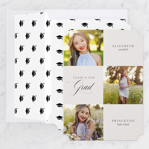 Celebrate the new graduate with this unique graduation announcement. Personalize with the graduate's name and the event details.