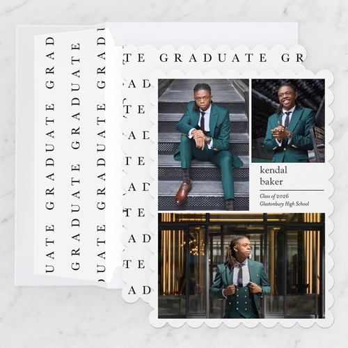 Celebrate the new graduate with this unique graduation announcement. Personalize with the graduate's name and the event details.